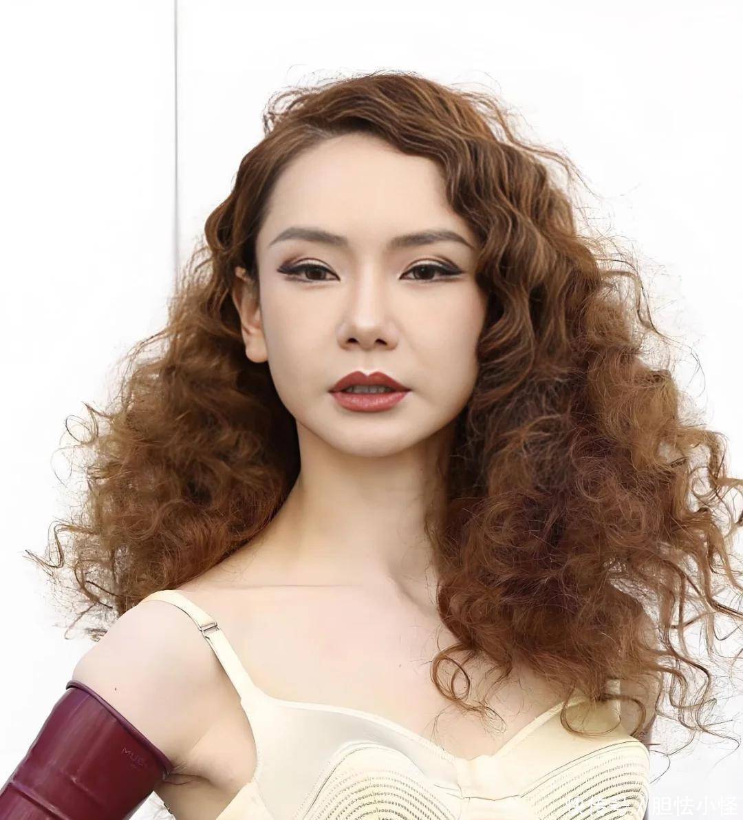 2024年她参与《姐姐妹妹抓娃娃》综艺录制,有天深夜没化妆的样子让大家都惊呆了。割的双眼皮宽得离谱,活像两条毛毛虫趴着,法令纹深得蚊子飞进去都能卡住,脸色蜡黄蜡黄的,和平时那个又美又飒的御姐模样完全不像。
